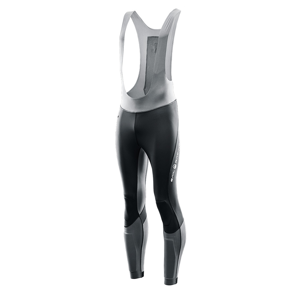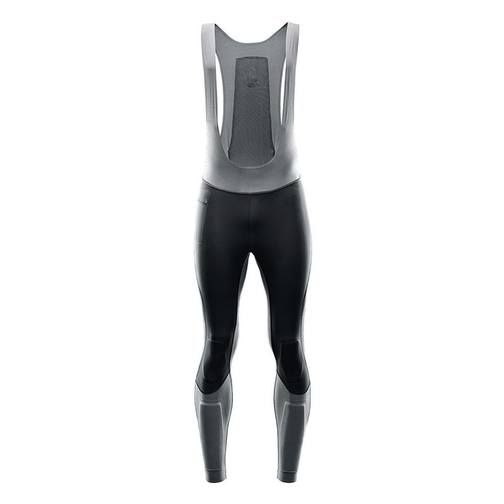 オルカ ハイブリッドビブタイツはウィンドプルーフスーパーストレッチラミネート加工生地でつくられています。その生地には耐水耐風のDWR加工がされています。前面に高い透湿性のラッシュガード生地。膝とすねにネオプレインパッドあり。腰のストレッチメッシュは通気性が良く、すべり止め加工です。裾にもすべり止め加工あり。伸縮性のフラットロックシーム仕上げの小さいポケットが右脚にあります。