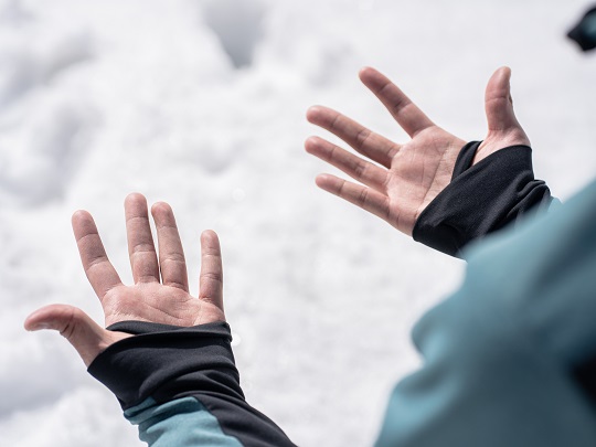 ストレッチ素材で手首に密着し、冷えを防いでくれます。