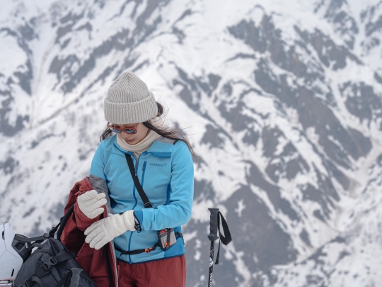 また、通常のフリースよりも表面の耐久性が高いため、アウターとしても心配なくザックを背負えます。