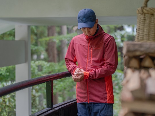 通常のフリースよりも目が細かく耐風性と耐久性が向上していることで、アウターとしても積極的に使え、使用の幅が広がっています。