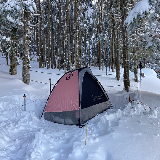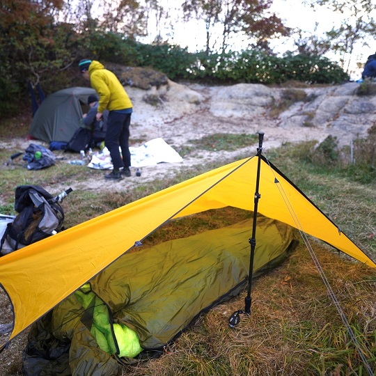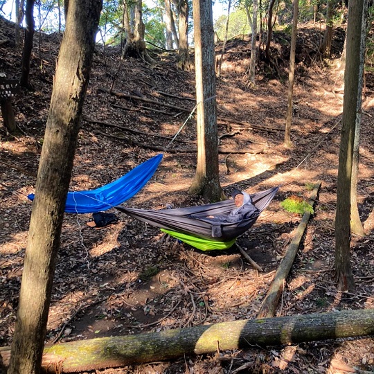 山でのテント泊はもちろん、タープ泊やハンモック泊もします。