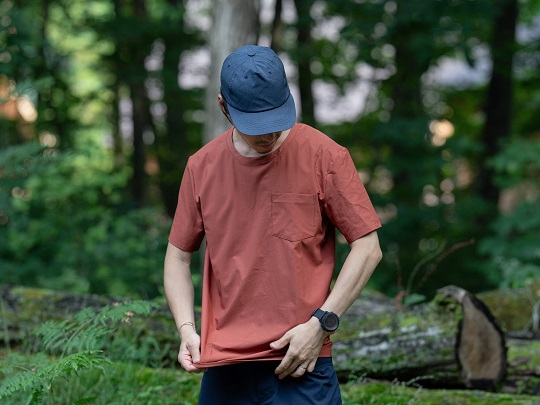 さらにシャキッとした程よい張りをもつ生地感は、ただのアウトドアウェアTらしからぬ、クリーンな印象を与えくれます。