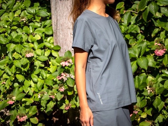 Wish Woven™はリサイクルポリエステルをメインに作られていますが、ベースレイヤーとして作られたTシャツなどと違うのは、まず生地表面がフラットで非常にスムーズな肌触りの部分。