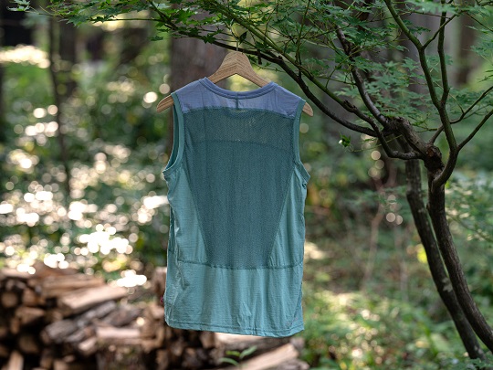140g/m²の100%メリノウールを使用したメッシュ (薄緑) とフラット (紺) な生地を組み合わせ、そのまま1枚でも、アンダーウェアとして着用しミッドレイヤーを重ねたりと、季節や気温に合わせてオールシーズン活躍してくれるモデルです。