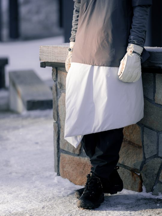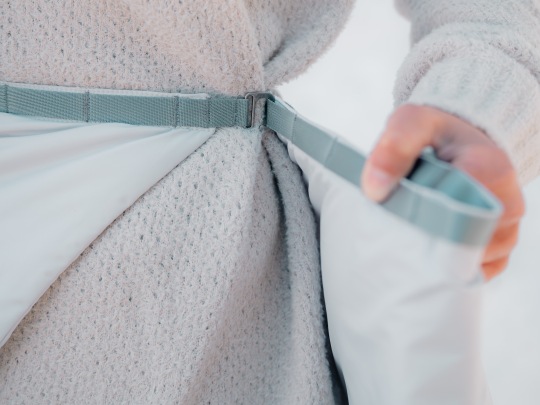 タイツやシェルの上からサッと巻くことで、寒い状況でのハイキングやキャンプなどのシーンにおいて、すぐに暖かさを提供してくれます。