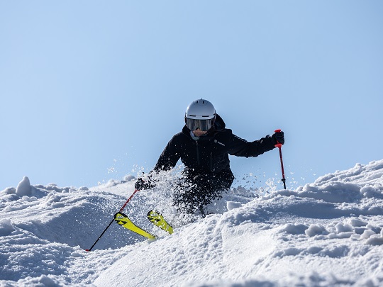 このレンズは雪面や路面の変化を際立させるハイコントラストレンズで、目からの正確な情報を捉えやすくなります。