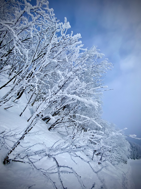 <仕事前、綺麗な霧氷を見ながら滑れるのは、トマムの魅力>