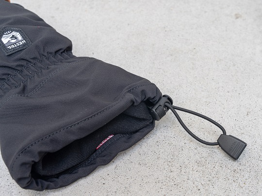 袖口に被せ、カフに付属したドローコードを引っ張れば、雪の侵入をシャットアウト。