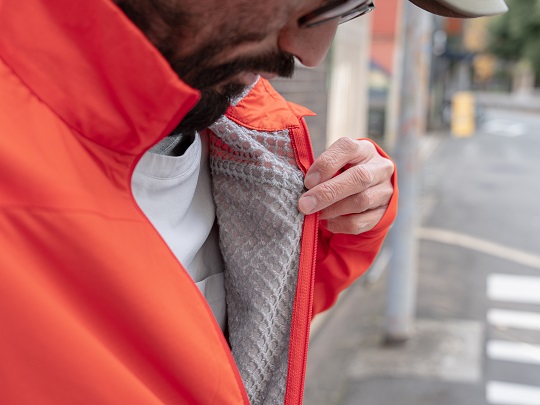 表面にはリサイクルされた防風性のあるPertexを、内側にはテイジンのOctaを配置しています。