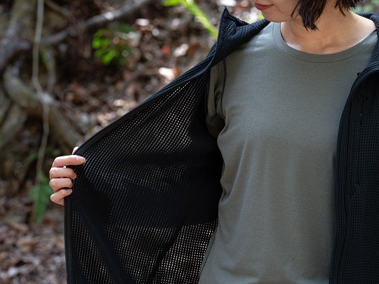 肌に直接着用するベースレイヤーでは、ACLIMA 『 WOOLNET T-SHIRT 』などのようにメッシュ構造のものはありましたが、ミッドレイヤーで全面にメッシュ構造を採用したものは今まで存在しませんでした。
