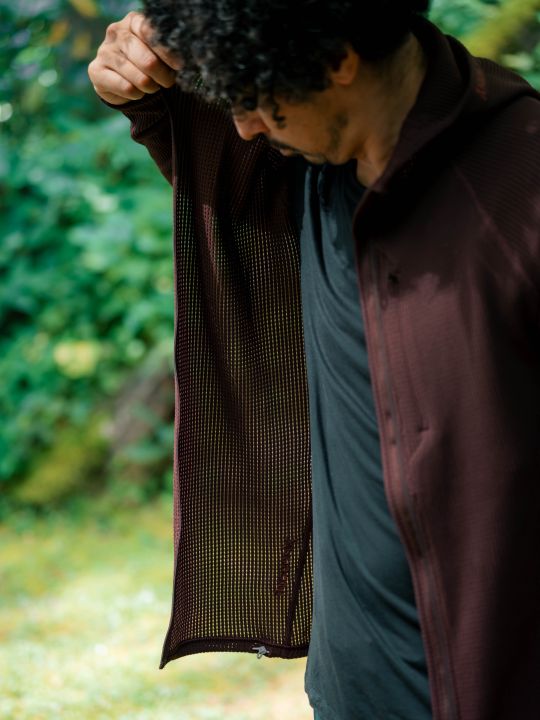 大胆なメッシュ地のフーディ―は、現行のHOUDINIミッドレイヤー(フリース)の中で最も涼しく気軽に羽織れ、レイヤリング次第で驚くほど活用範囲が広がります。