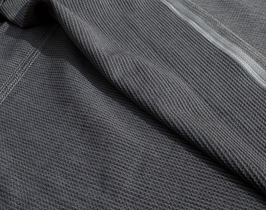 その他の発汗量が最も多い背中や脇下は、より通気性に優れたニット構造のポリエステル生地を使用しています。
