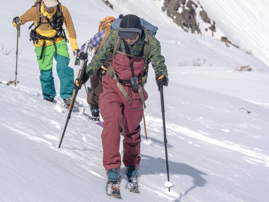 その安心感とスタイルで、雪上において初冬から残雪期までずっと活躍してくれるビブパンツです。