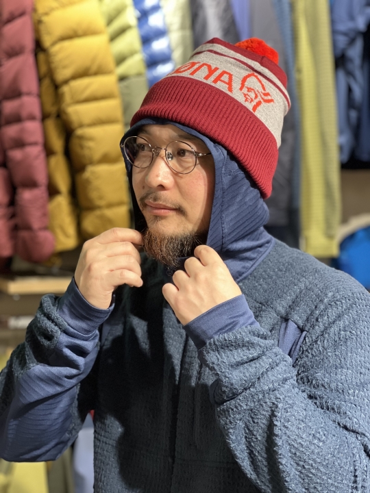 フードも絶妙なサイズ感と薄めの生地感なので、バラクラバのようにフードを被ってからビーニーやヘルメットを合わせても、ごわつきも無くノンストレス。