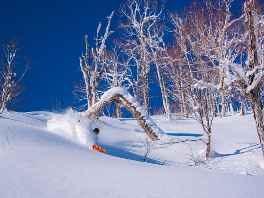 <登りの辛さも、滑りだしたら忘れちゃうこの快感。これぞバックカントリーの醍醐味!>