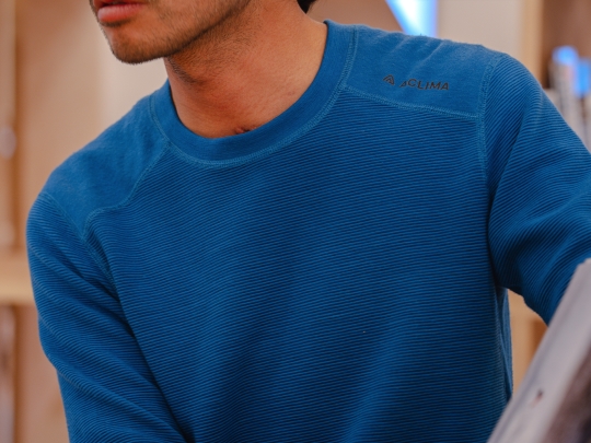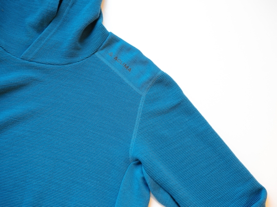 ACLIMAが展開する他のベースレイヤー製品と比較すると、頼りがいのある生地の厚みとコシを持ち、1枚でパーカーのように、はたまたミッドレイヤーとして、気温の低い環境下のベースレイヤーとして、ユーザーの使用シーンに合わせて幅広く使ってもらえるアイテムです。