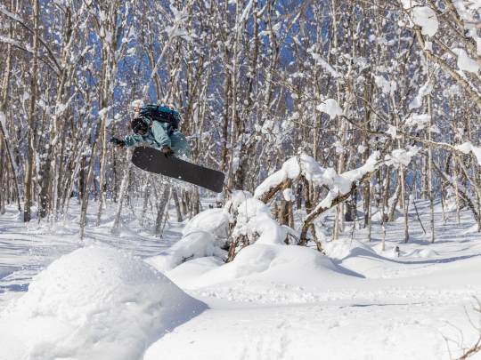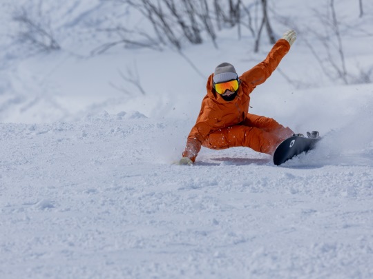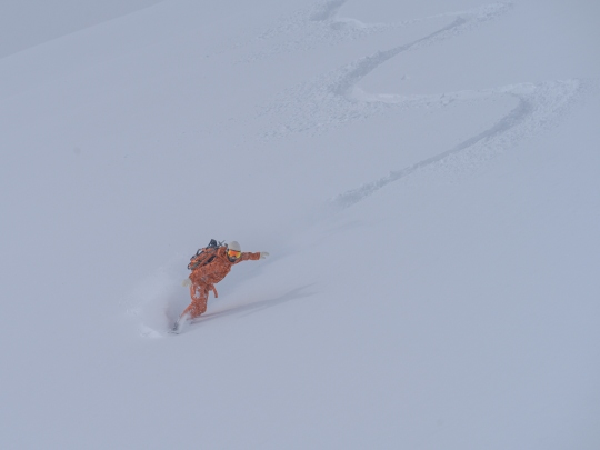 バックカントリーでノートラックの斜面にラインを描いたり。