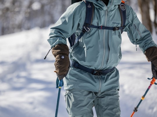 耐久性にメインに考えた屈強なスノーシェルではなく、雪のあるあらゆるシーンで使える万能性を求めているため、スノーシェルとして必要な耐久性を確保した上で、軽さという優位性も視野に入れてデザインされています。