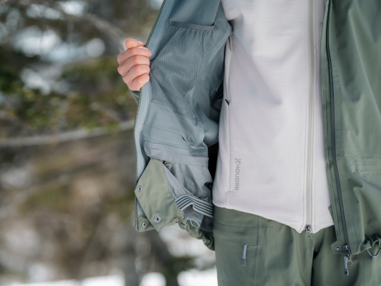 クリーンなルックスでいながら、スノーシェルに必要な機能はしっかりと抑えられた防水ジャケットです。