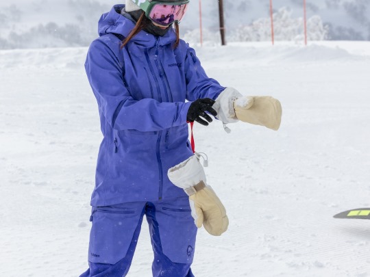 ロングカフで雪の侵入を防ぎ、取り外し可能なウールライナーで保温性をUP。