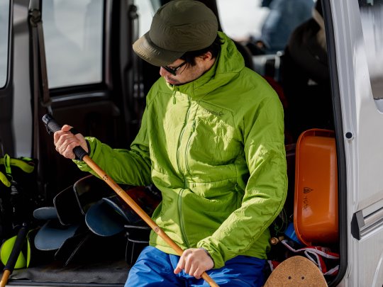アクティブインサレーションの代表的な素材とも言える、Polartec® Alpha® ダイレクトを全面に用い、表地のウィンドシェル生地aero100で防風性と撥水性をプラスしています。
