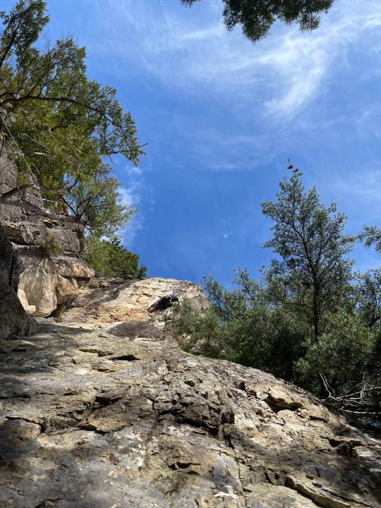 このルートの特徴は、ルート自体は短いものの全体的にホールドが小さく、岩質がガビガビしていて指への刺激が強いうえ、1手1手の強度が高かったです。
