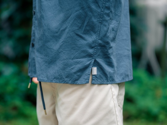 『 Ms Longsleeve Shirt 』や『 Ms Tree Longsleeve 』などのボタンシャツでは、これまで背中側が長かったり裾がカーブしたものでしたが、この新しく登場した『 Ms Tree Shortsleeve Shirt 』では、サイドスリットの入ったフラットな裾形状を採用しています。