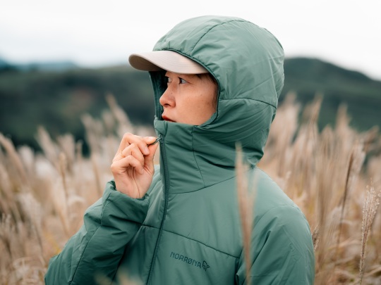 NORRONAの化繊インサレーションジャケットとしては、少し薄手の『 falketind thermo40 Hood 』。
