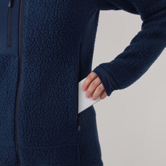 同じく保温性の高い毛足の長いフリース『 femund warm3 Jacket 』と比較すると、フリース繊維が寝たりつぶされたりすることが少なく、高い保温性を安定してキープできることがwarm3素材の特徴です。