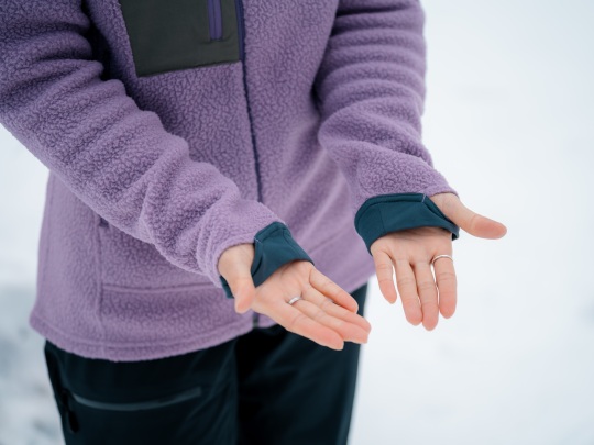 動きやすくて暖かいストレッチカフは、スリットが入りハンドゲイターとしても使えます。