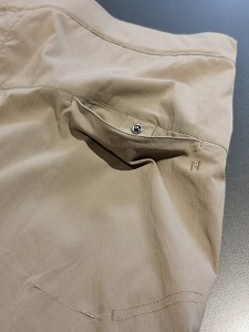 両側のサイドポケットに加え、臀部右側のバックポケットにはショーツをコンパクトに収納することができ、