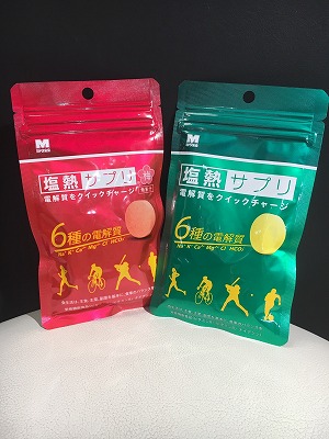作業服や安全靴でも有名なミドリ安全の「塩熱サプリ」。タブレット状で食べやすく、これ一粒と水100mlで汗をかいた体に素早く吸収されます。