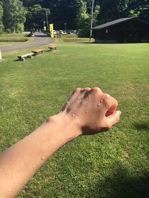 身体を冷やせる場合は、冷やすのも効果的です。ちょうど水道があったので手や足や頭、首にかけて冷やすことができました。