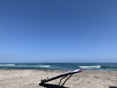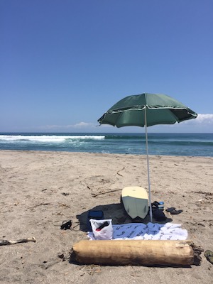 翌日も貸切。波もある。パラソルもある。ビールもある。