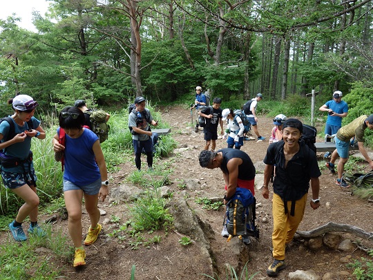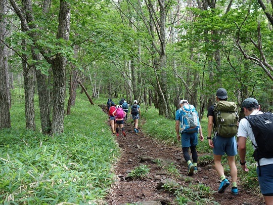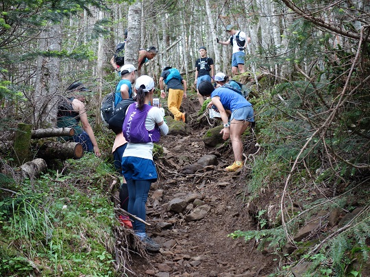 トレイルラン系のイベントには珍しく、今回は登山をする為に30L程度のザックを背負ってもらいました。