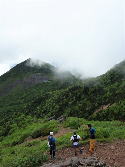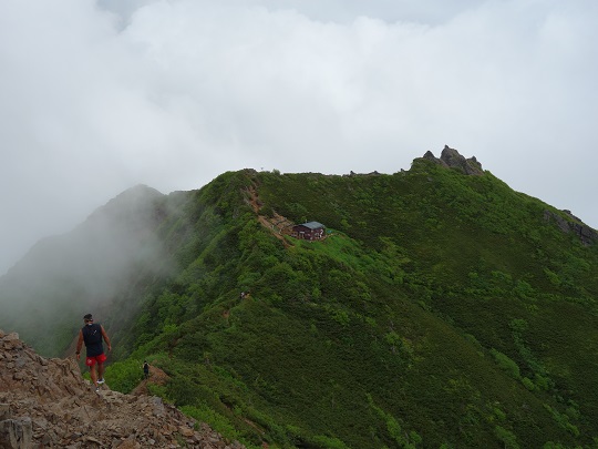 稜線の青年小屋でザックをデポし、トレイルランスタイルでまずは西岳へ。