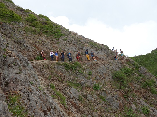 実際にほぼ初めてという方もいて、岩場などでの基本である三点支持を実践してもらいました。
