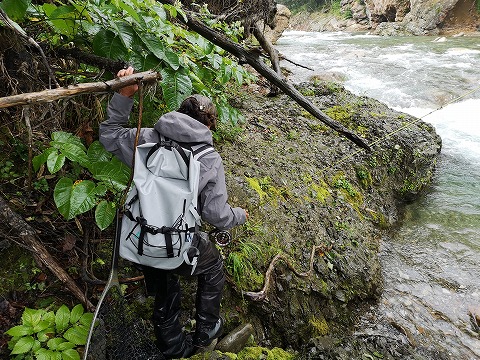目的地に着き、小雨が降る中川へ入る準備を整えいざ出陣。