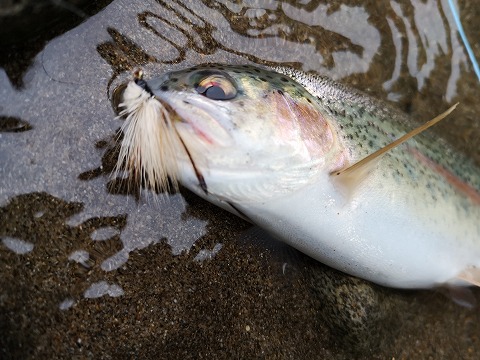 やっとヒットしたと思っても非常に小さいニジマスのキッズばかり。