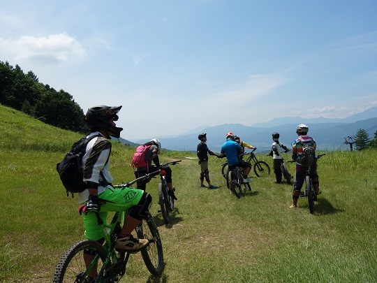 MTBが初めてという方もいましたが、ガイドさんにレクチャーを受け、ガイドさんの後ろに付いて動きを見ながら1本下れば、2本目からはいいスピードで楽しめていました。