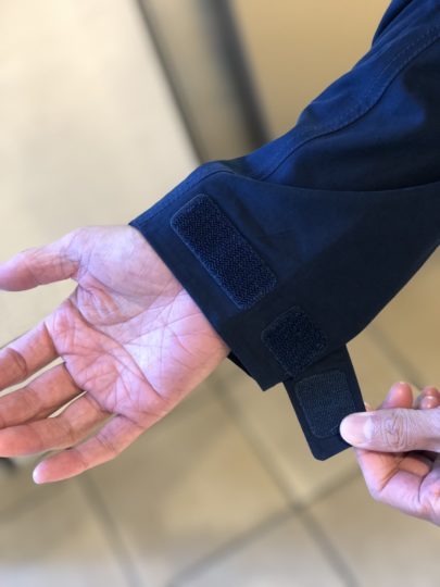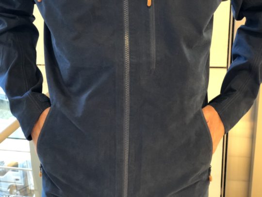 生地は前回紹介しましたcotton Anorakと同じ生地で防風性・耐久性のあるオーガニックコットンとリサイクルポリエステルの混紡素材を使用しています。