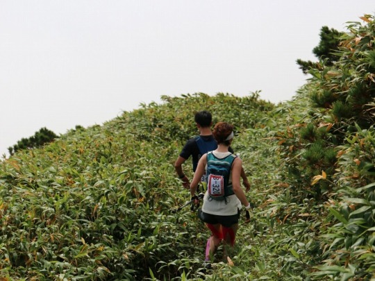 ここを走るのはトップランナーのみで、後ろはずーっと1列縦隊になります。しかしここは自分のようなマイペースランナーはゆっくり登るが吉。頑張りすぎると後半バテバテになるので一息ついて休みながら行きます。