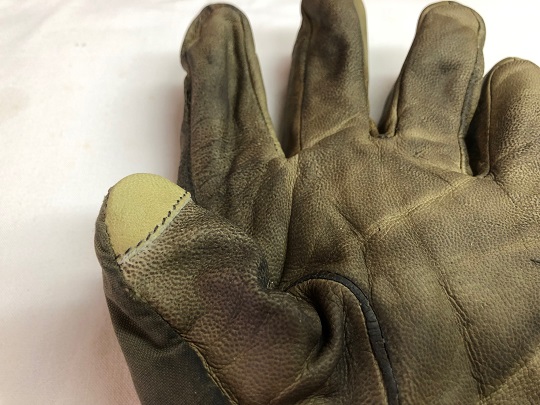 例1) 15年物 GORE-TEX入りグローブ。親指先端の破れ
