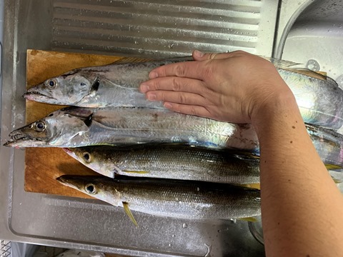 ちなみに下に写ってるのはタチウオ狙いで最近釣れる外道のカマス。これもまた美味しいんです。