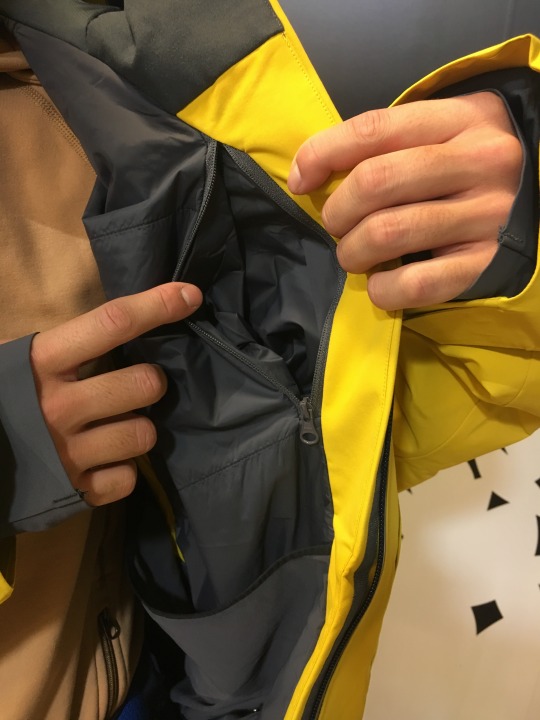 内側にはジップの付いたポケットと、ゴーグルやグローブを入れるのにちょうどいいサイズのポケット。