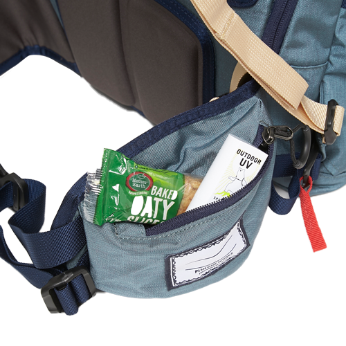 行動食や日焼け止めなど、すぐに出したいアイテムを収納できるウエストポケット付き。