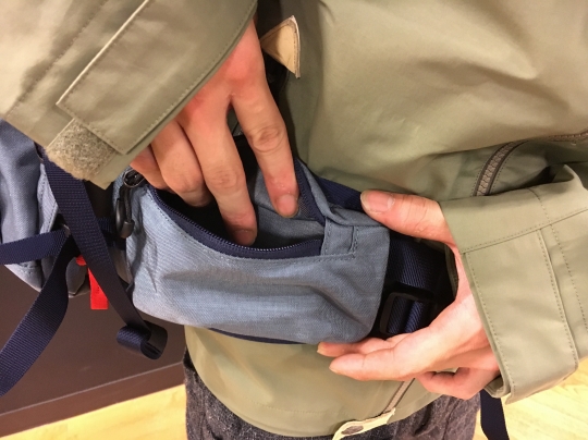 変わらずあるのは腰のベルトには左右にポケット。奥行きが深いので、行動食やグローブなどかさばるものも入れられます。