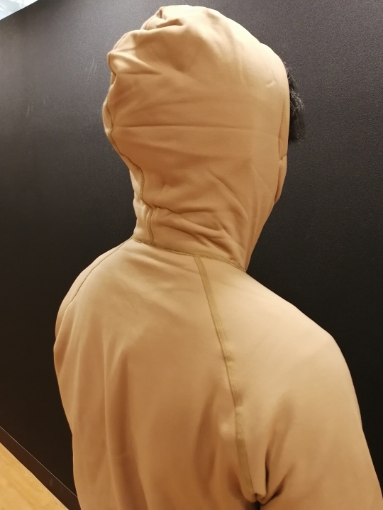 フードは頭にしっかりフィットするように設計されていて、冷気をシャットアウトしてくれます。