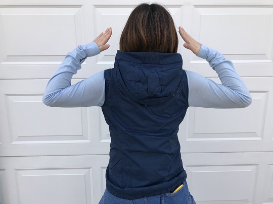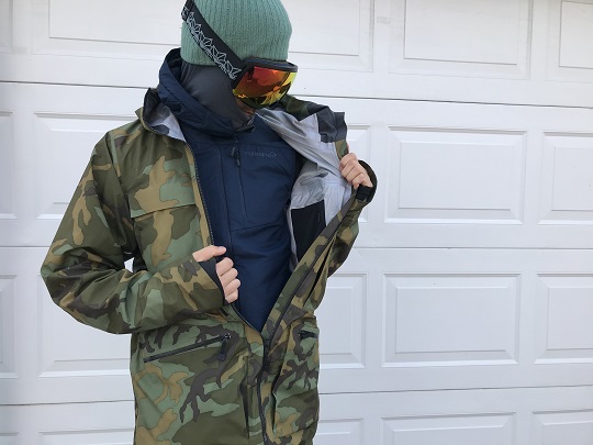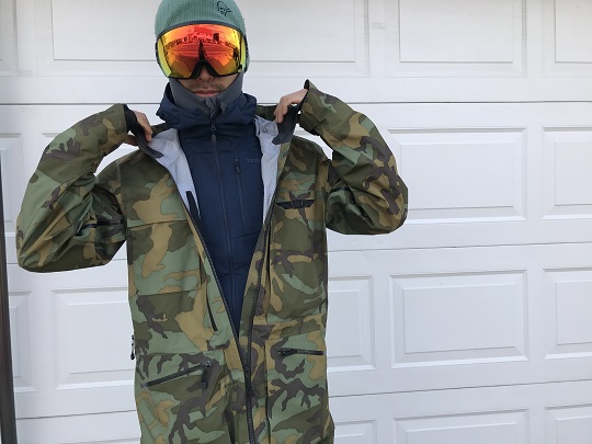 フルジップを一番上まで上げれば、襟周りが深く首元の防寒も良く、フードは薄い作りなので、シェルとダブルフードでもストレスありません。