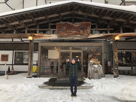 滑った後は、温泉も堪能です。今回白馬から一緒に参加してくれたMauka Outdoor 所属のアキラ君はなんと青森県出身!!